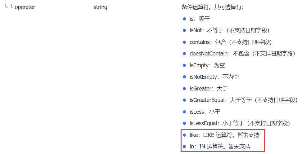 文档列出了7种支持的字段格式,其他格式字段后续看业务需求提供支持。