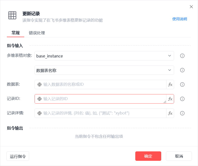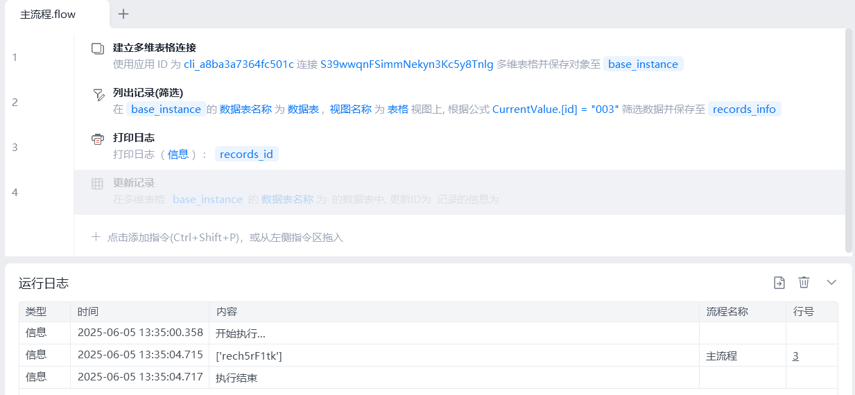 由于ID不在多维表显示,只能是通过列出记录来返回ID,那 列出记录(筛选) 指令当为首选。