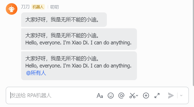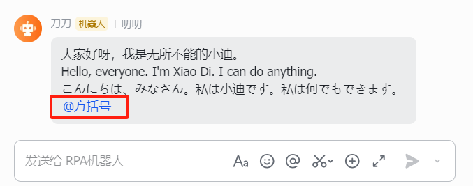 <at user_id="all">所有人</at>我们需要通过指令取到 user_id 和 名字 。