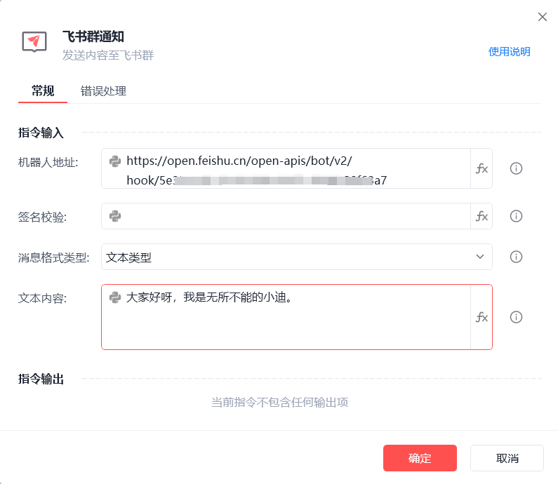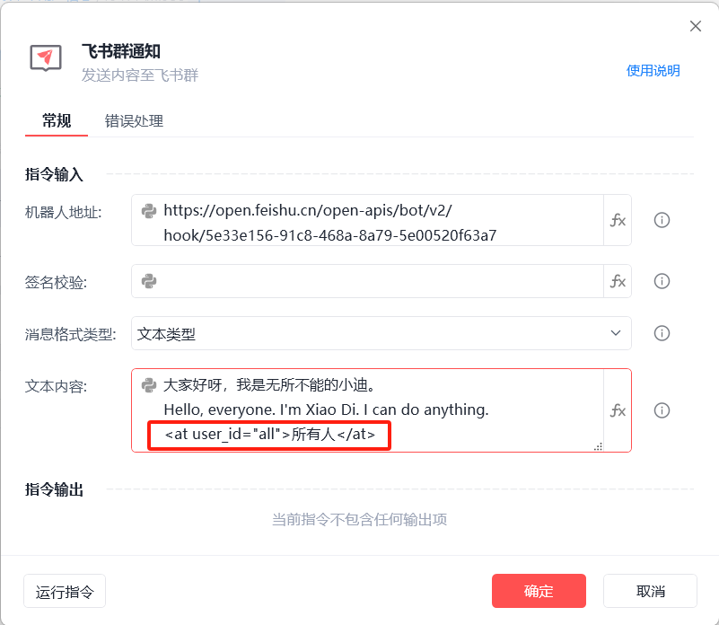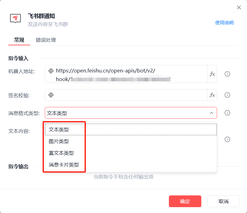 发布于 2025-06-13 18:041205浏览飞书群通知 指令可以发送4种类型的消息至飞书群。