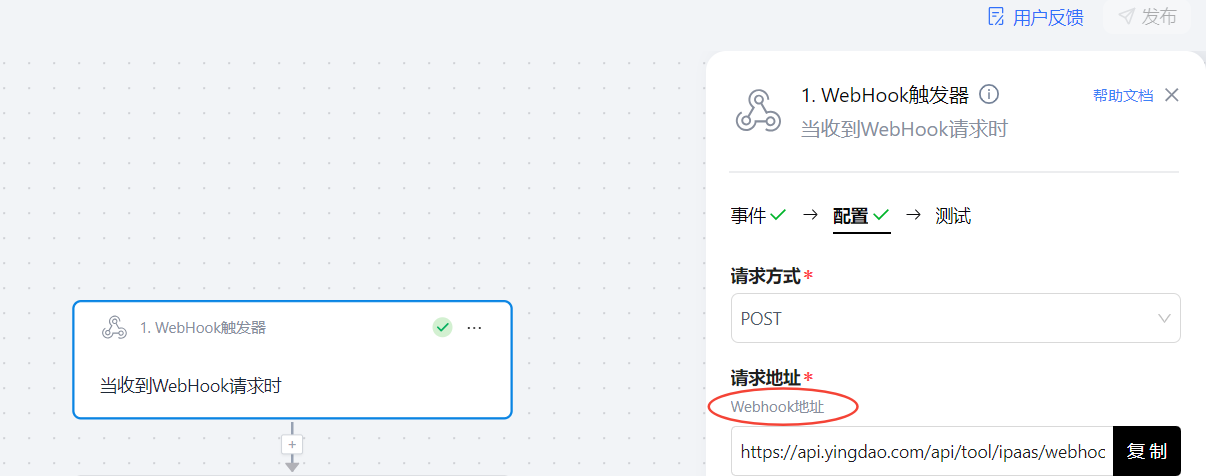 3.操作选择 发送HTTP请求,请求方式选择POST, URL填写影刀高级任务webhook地址;