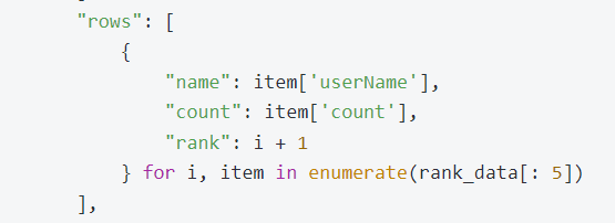 表格信息 rows 由列表推导式获取当前排行榜信息即可。