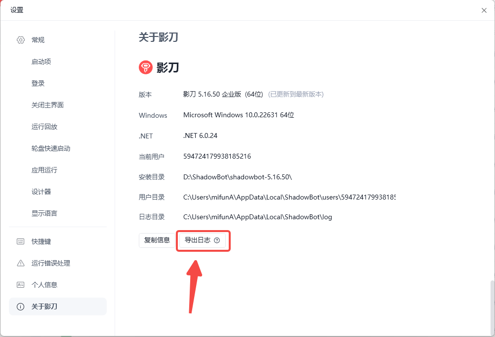 从影刀的设置中导出运行日志来看一看更详细的日志🤓