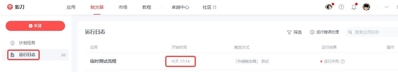 再根据触发器执行的时间找到报错,比如我根据运行日志发现触发器运行开始时间为17:14