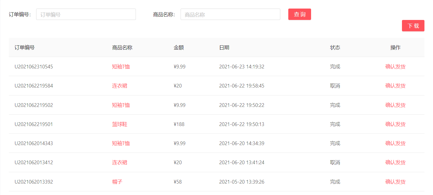 注:此处不能通过每列右侧黑色三点选择“在左侧插入列”或“在右侧插入列”来完成订单编号、商品名称、日期、状态及操作等数据