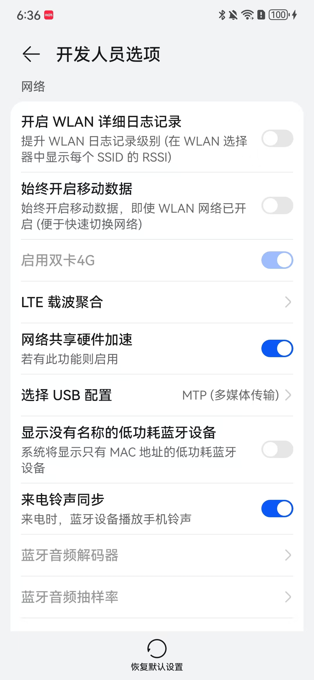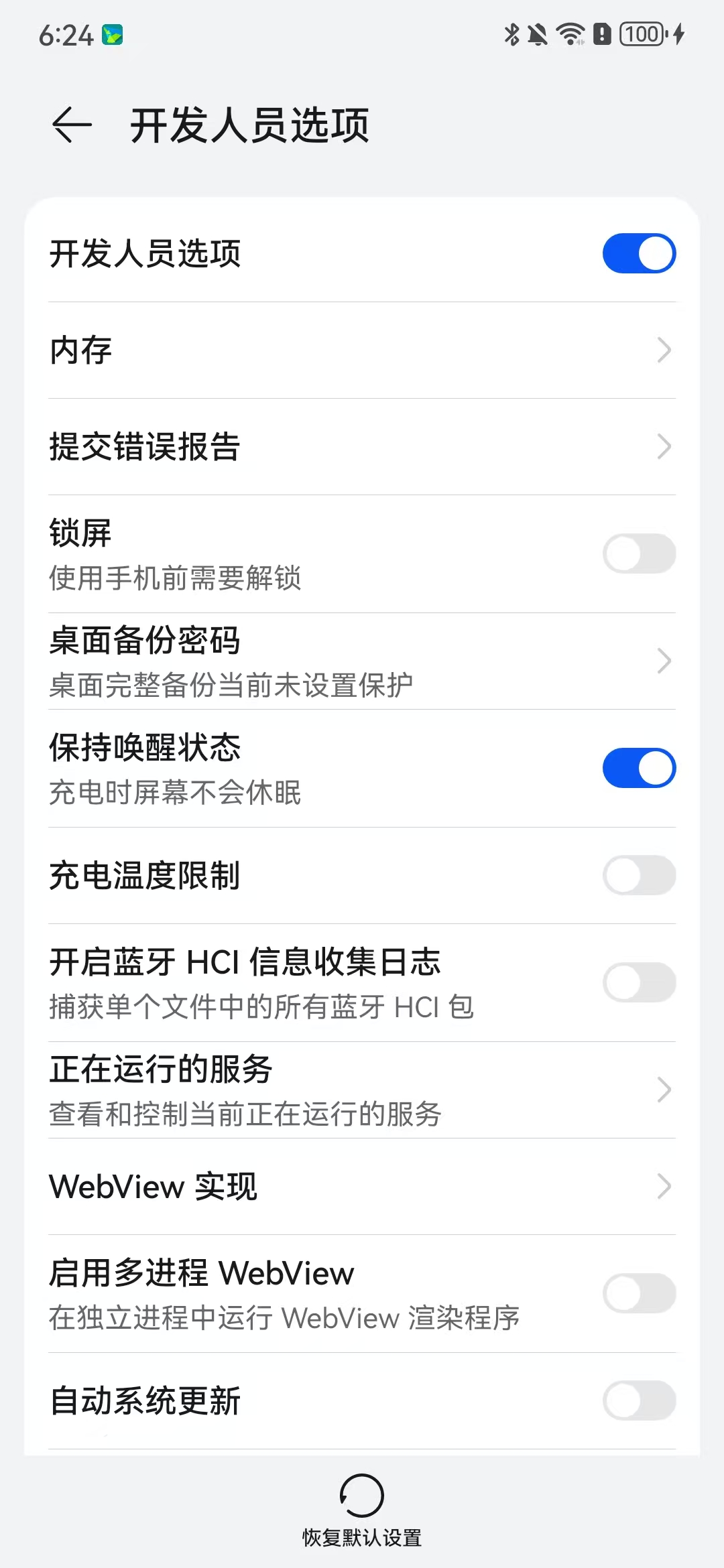 手机的开发者选项打开后打开/关闭的设置如下: