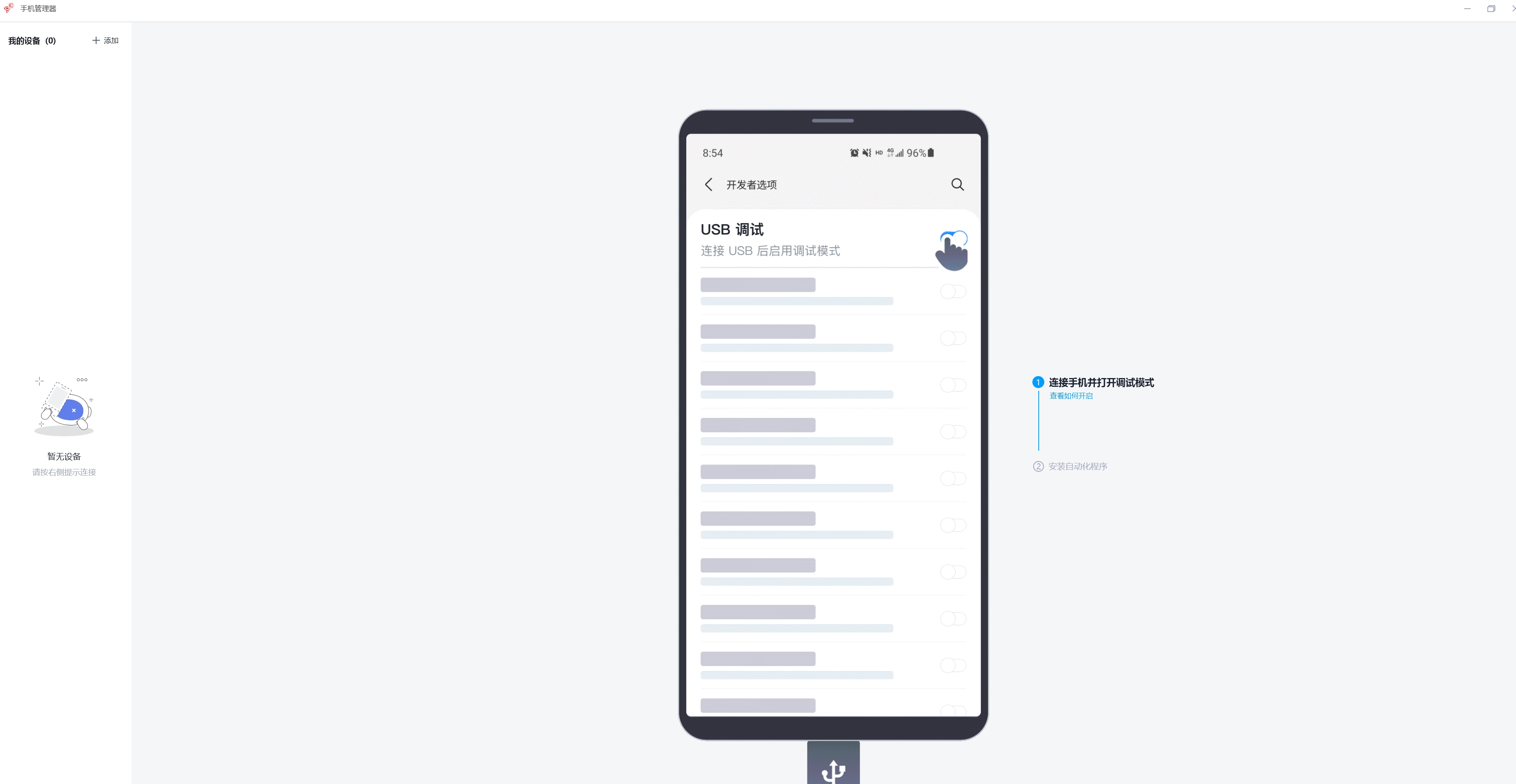 打开了开发者模式,USB调试,允许通过HDB连接授权连接设备也打开了,但是连接不上手机,手机端没有安装手机助手,因为没有提示要安装。