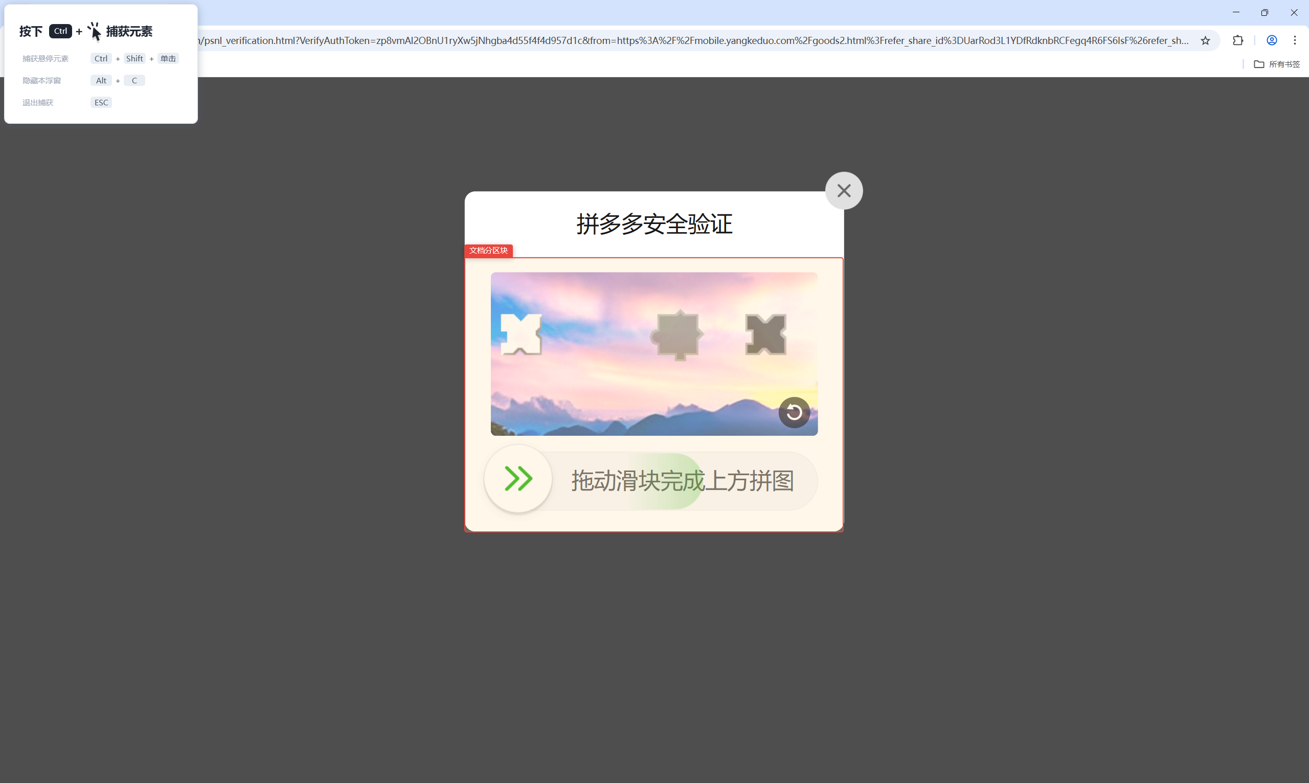 拼多多网页版商品信息获取的时候,经常出现安全验证,需要滑块验证,但是他的元素捕获不到,就像这样,不知道怎么搞