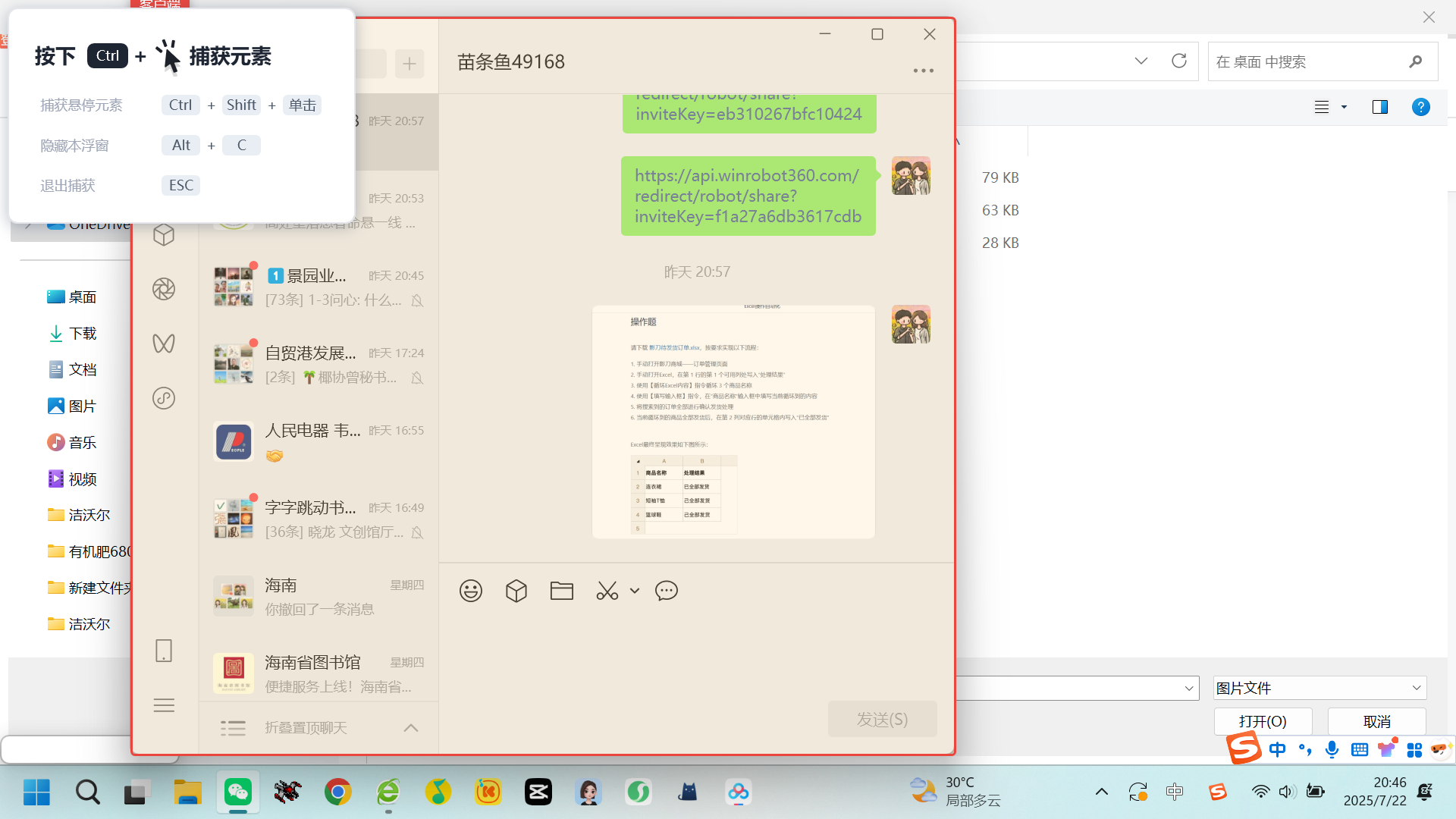 在桌面软件自动化下拉指令框里,选择填写输入框,去选取元素的时候,就无法选取微信的输入框。