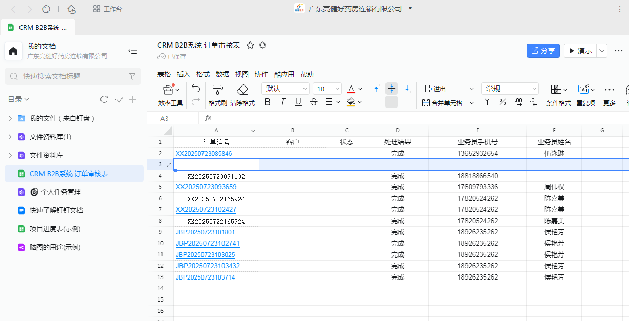 钉钉表格怎样用应该删除空白行