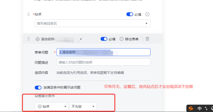 在业务员提交报表时,我们往往要预想参数输入的所有可能,比如我的店铺有几个站点:MLM、MLB、MLC、MCO,在这几个站点下分别有它们各自对应的活动。现在需要参报活动,有两个下拉选项,一个站点,一个活动,我希望业务员提交表单的时候不要填错各自的站点,所以这时可以增加参数输入的规则限制:在第一个下拉框选择某个站点后,第二个下拉选项只能选择该站点下的活动。