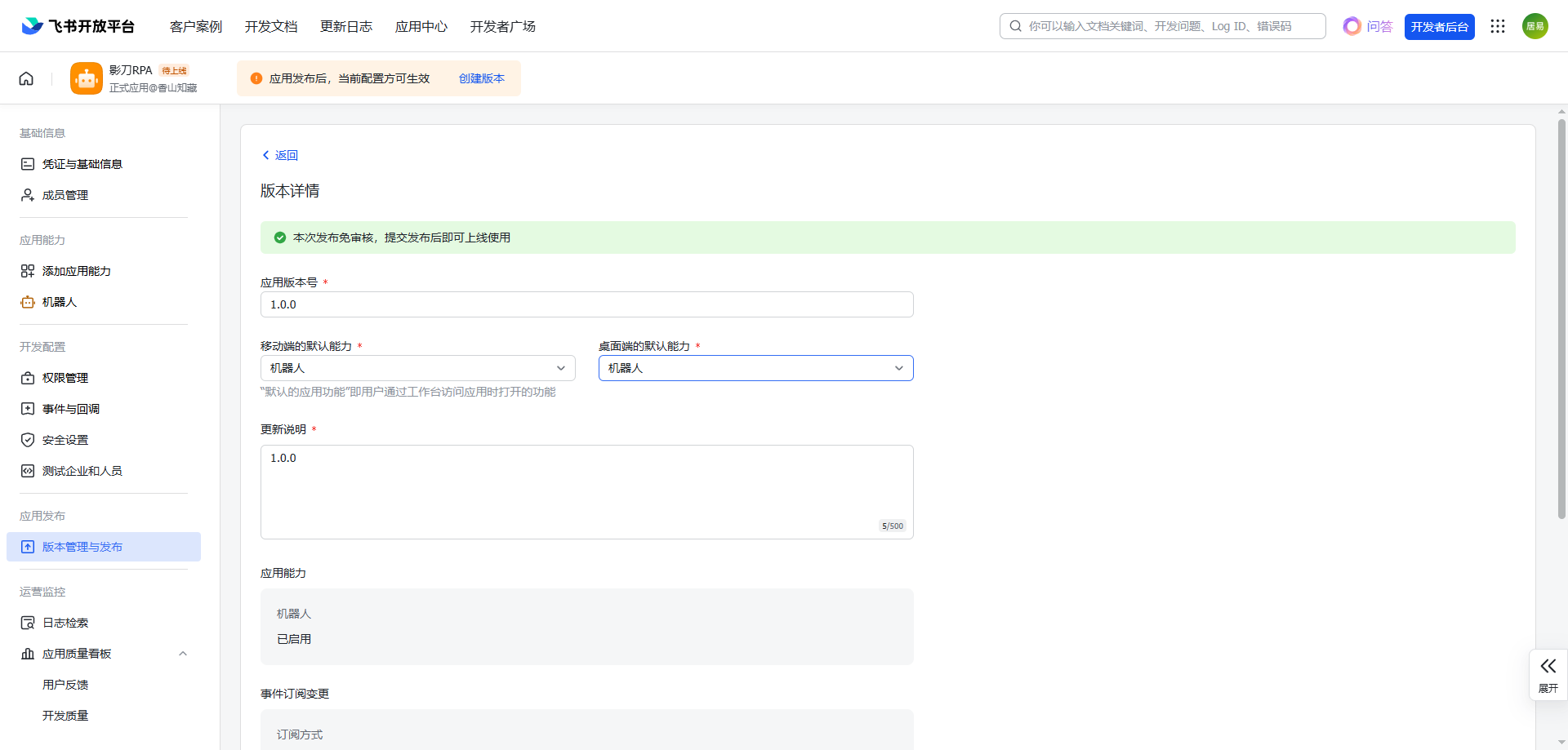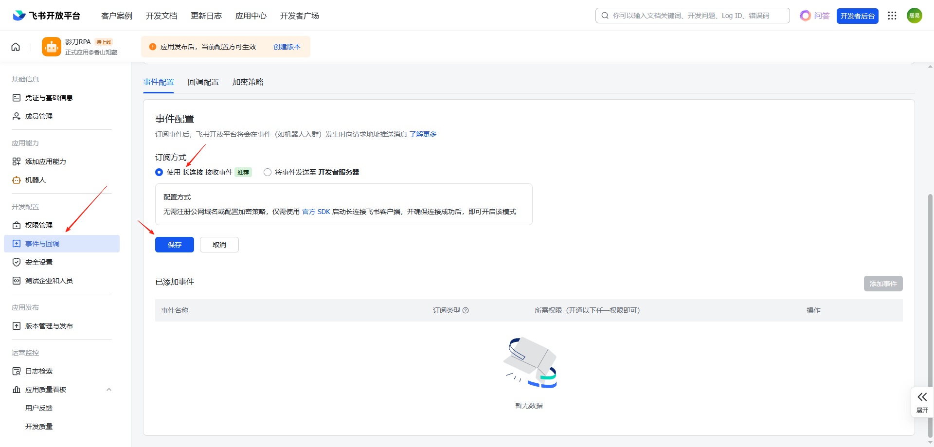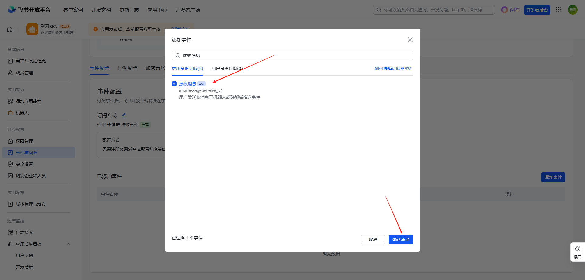 飞书机器人消息调度是一款用于监听飞书机器人消息并触发影刀RPA脚本运行的工具类应用。通过配置关键词和工作目录,可在接收到指定消息时自动创建或更新文件,从而触发影刀RPA的文件触发器。