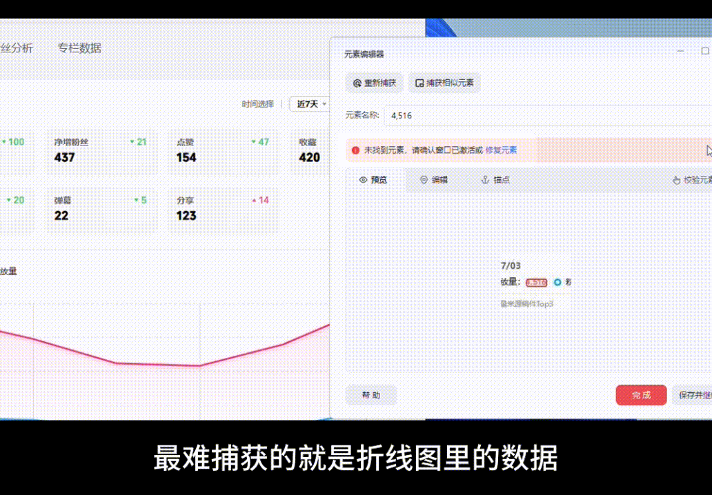 就像视频里所说,传统元素无法定位折线图里的动态数据,智能元素可以通过分析页面结构,精准识别并生成稳定路径。