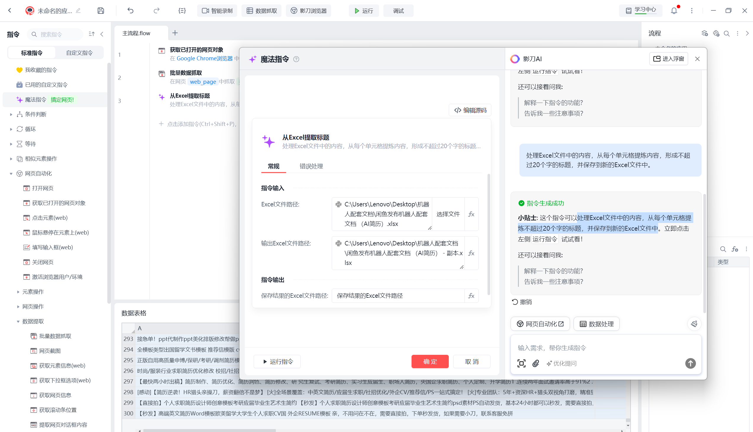 影刀RPA-魔法指令-邪修用一句话搞定 Excel内容标题提取 有多简单!!!