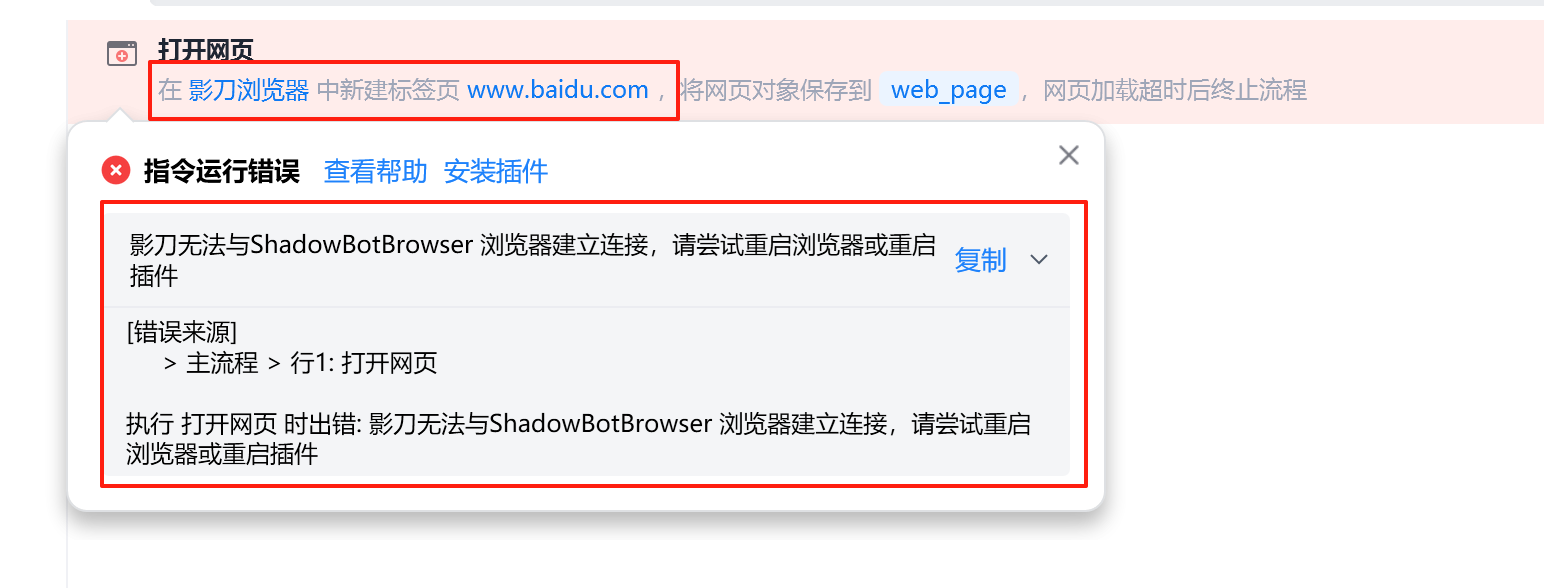 PC自动化打开影刀浏览器后无法打开网页,提示无法与影刀浏览器建立连接,这个是啥意思?要怎么解决?