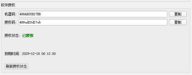 • 软件启动后自动获取机器码