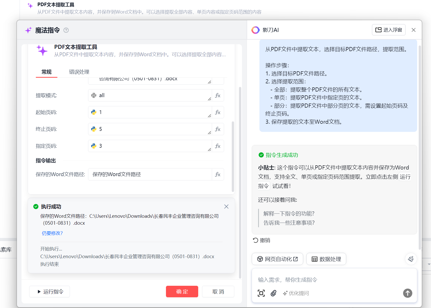 影刀RPA魔法指令——从PDF文件中快速提取文本,转换为Word,简化文档处理流程!