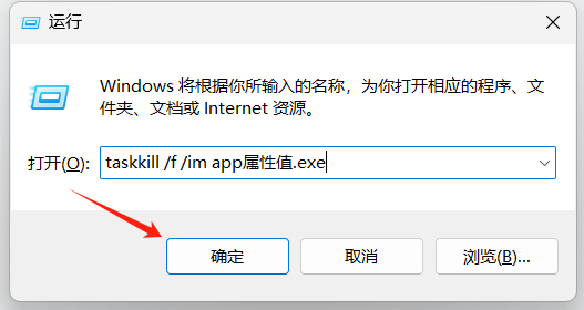 8、核心就是那段命令,只需要修改成对应的app属性值即可:taskkill /f /im app属性值.exe