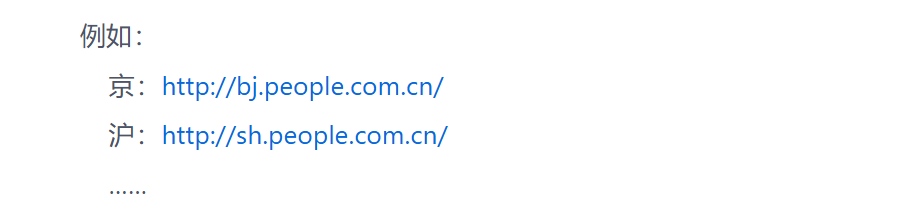 地方名称和网址的列表,单条格式 "北京:https://xxx.com/beijing"。天气/交通门户运营:一次性抓取全国 300+ 城市子站链接,批量生成地方频道报表。