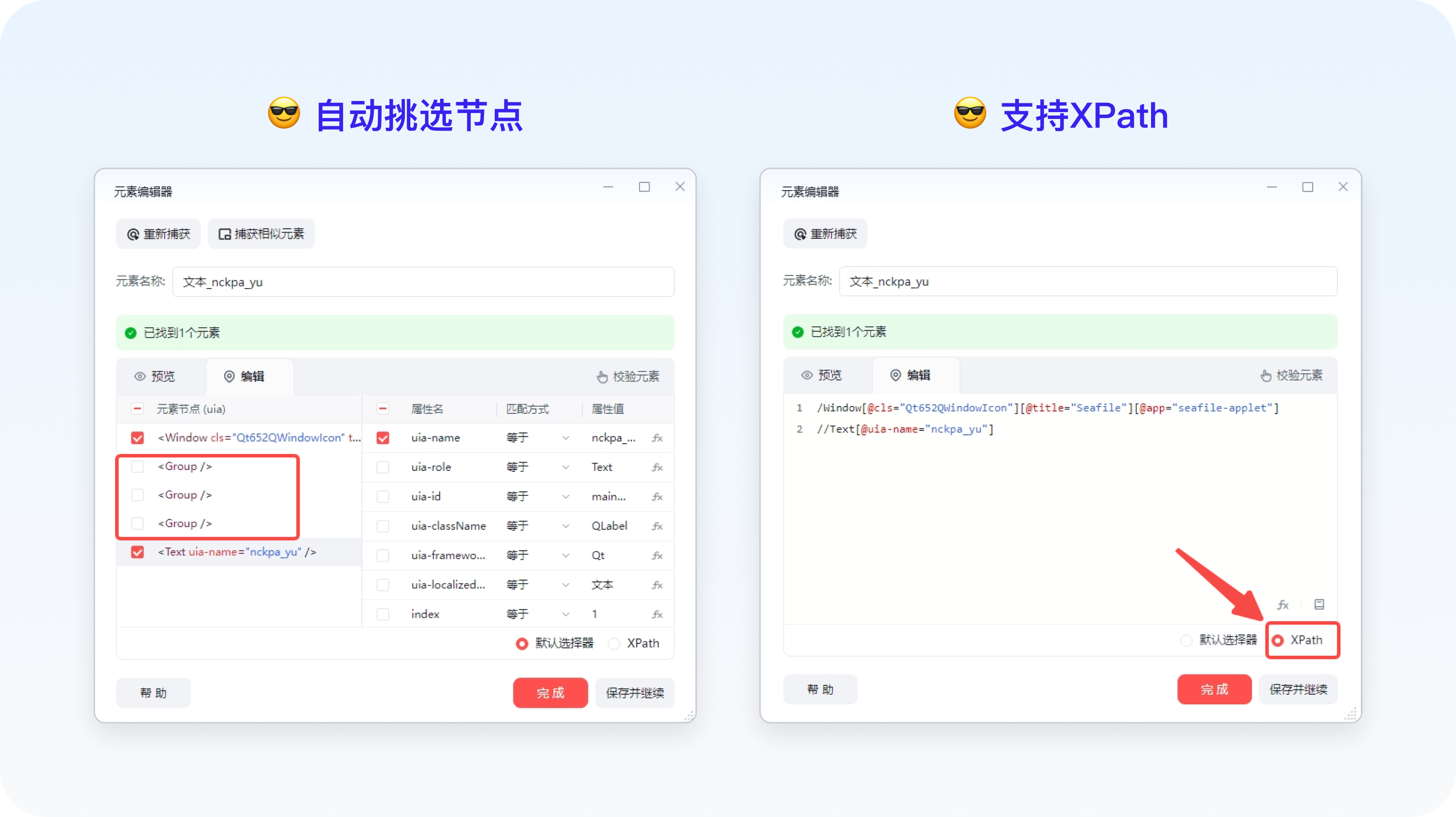 现在捕获桌面元素(UIA)时,也支持自动生成更智能的元素了,这会让你捕获的元素更加稳定。