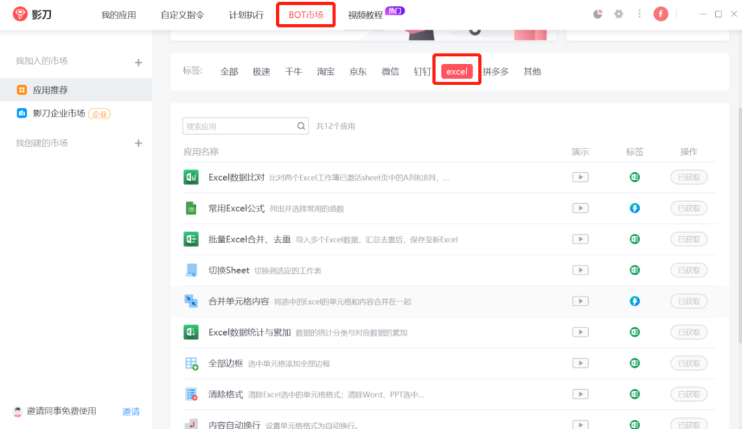 影刀RPAbot市场-部分excle通用应用