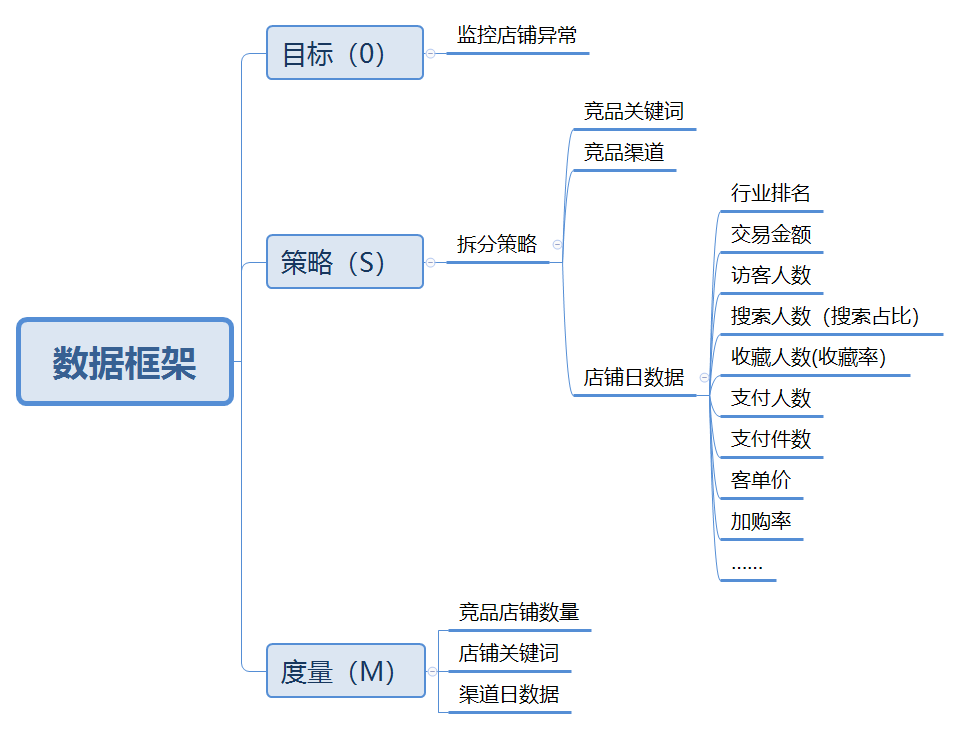 即明确目标,拆分目标,补充策略,衡量指标。按照OSM模型,梳理小智老师整体数据框架,如下图所示: