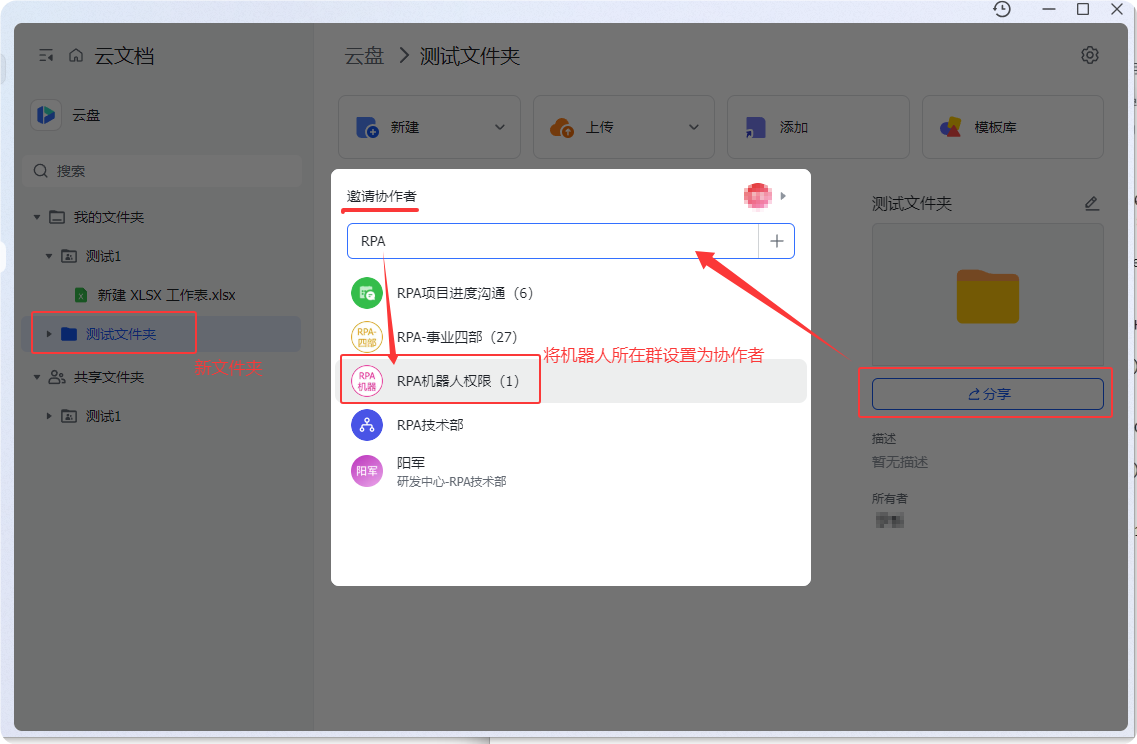 4.后续新建的其他文件夹也只需将该群设置为协作者即可
