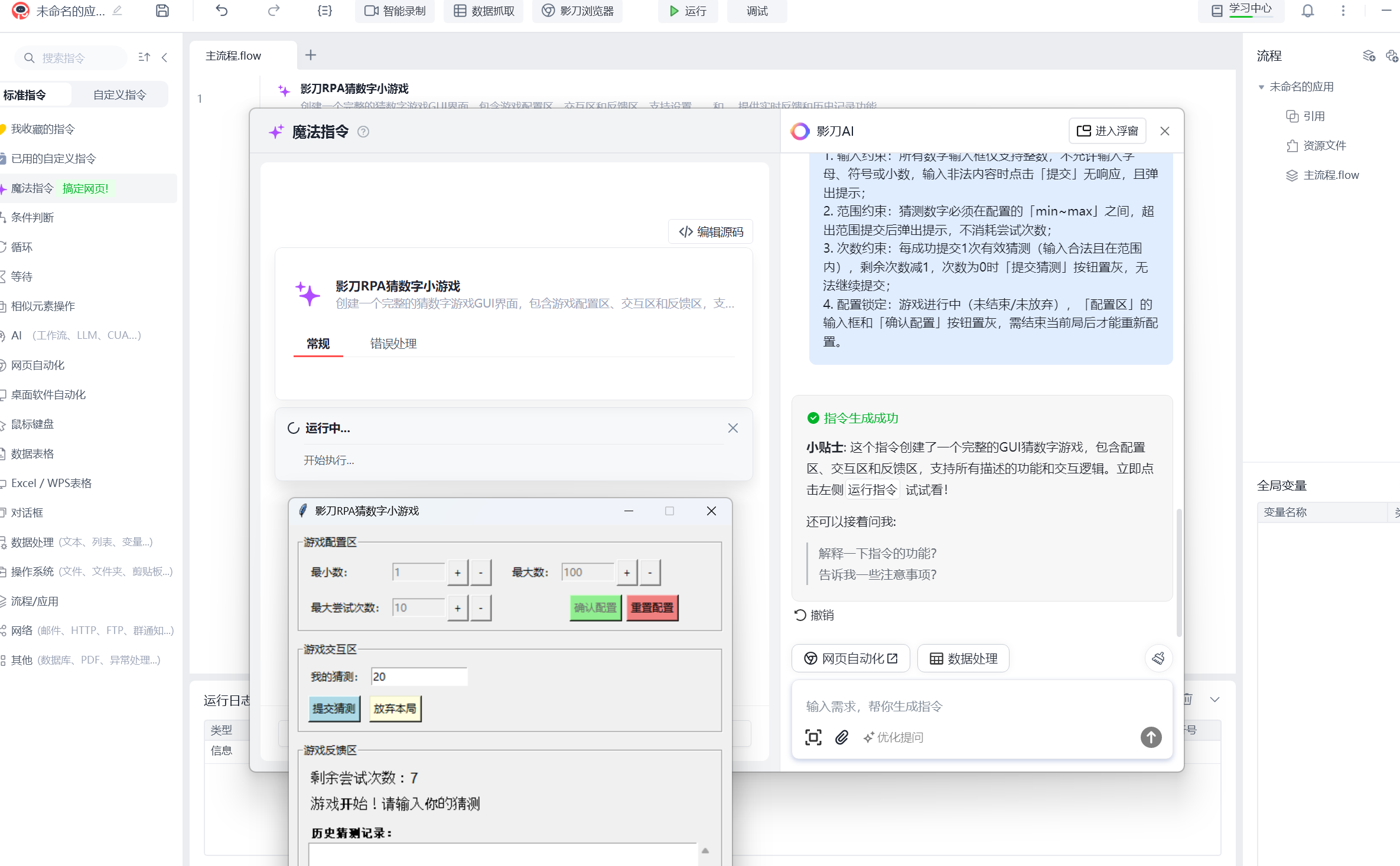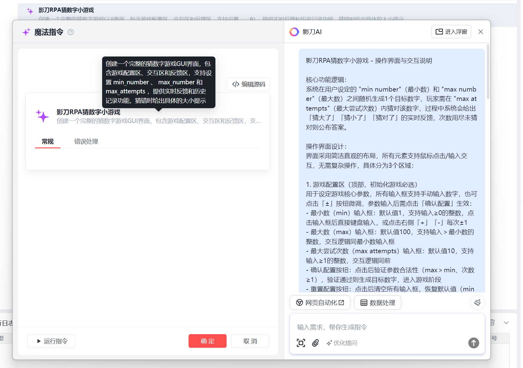 影刀RPA-魔法指令-邪修用一句话搞定 生成一个猜数字小游戏 有多简单!!!