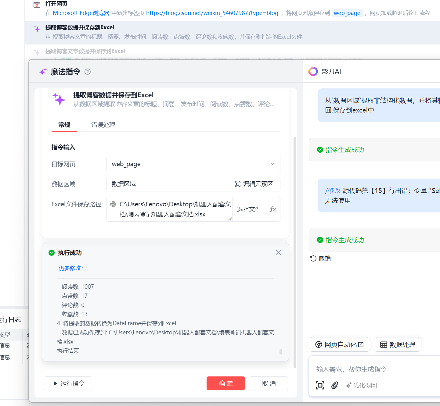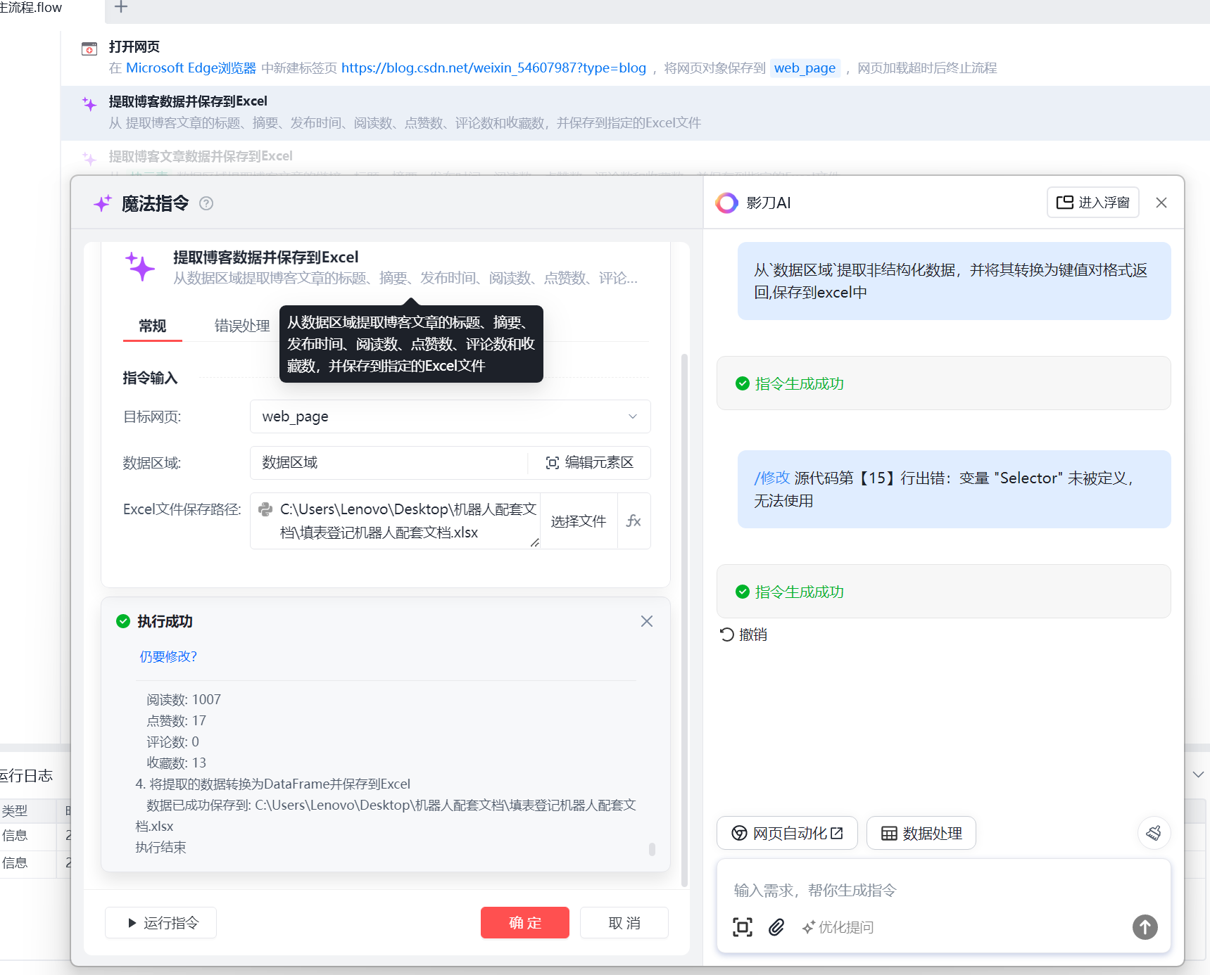 影刀RPA-魔法指令-邪修用一句话搞定 提取CSDN博客数据并输出excel 有多简单!!!