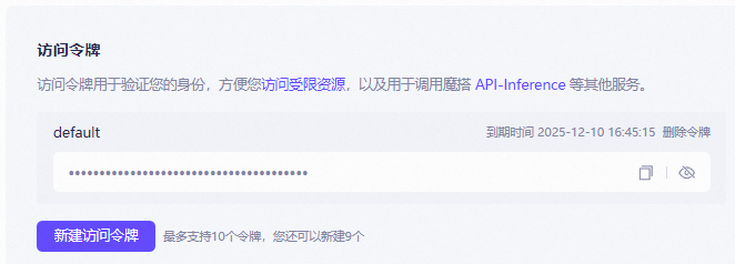 参数1:apikey https://modelscope.cn/my/myaccesstoken