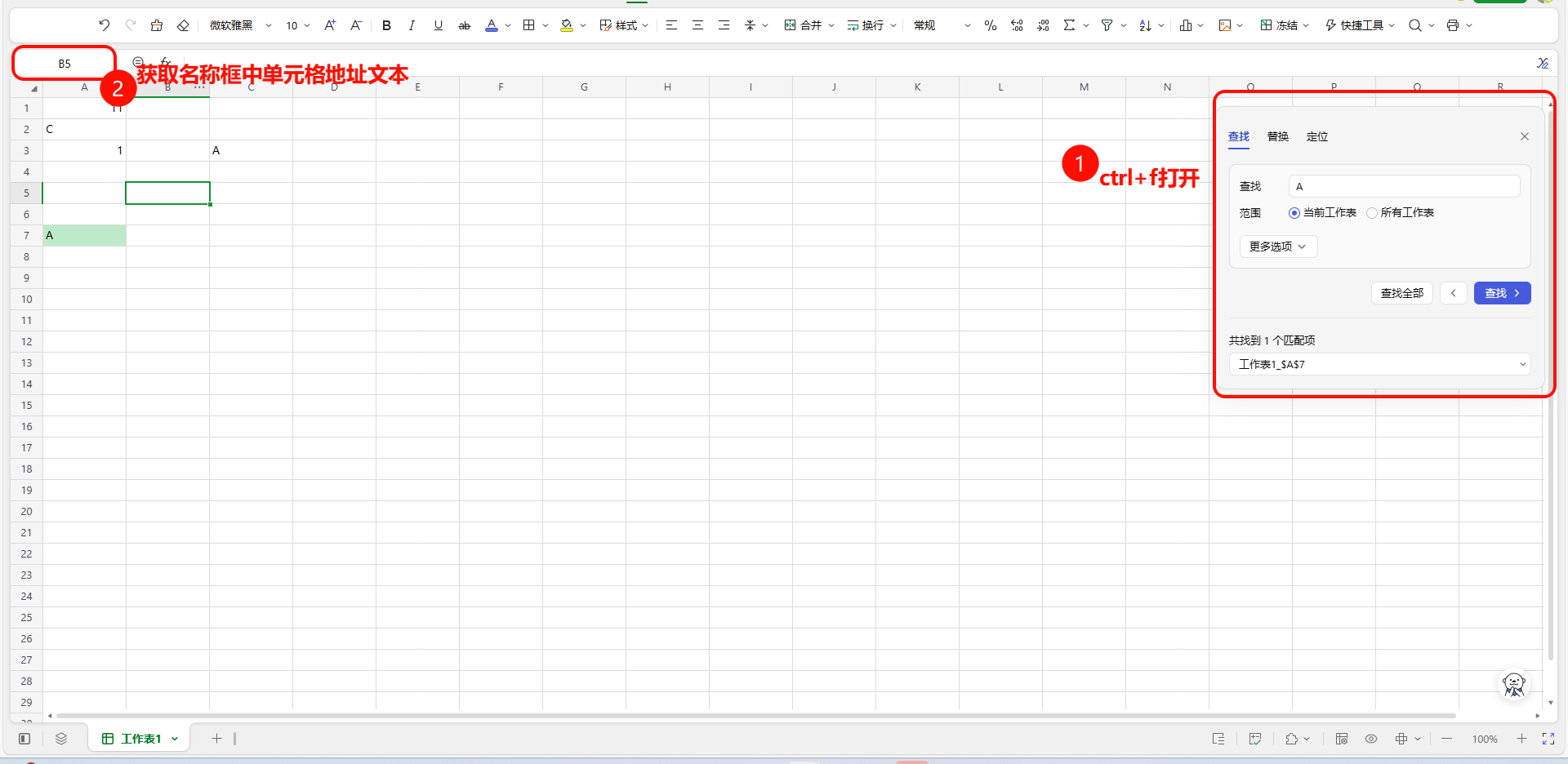 考虑到可能在非目标查找区域,也存在相同值的情况,为了固定查找范围(单列/单行),需要在查找前,先选中目标列。