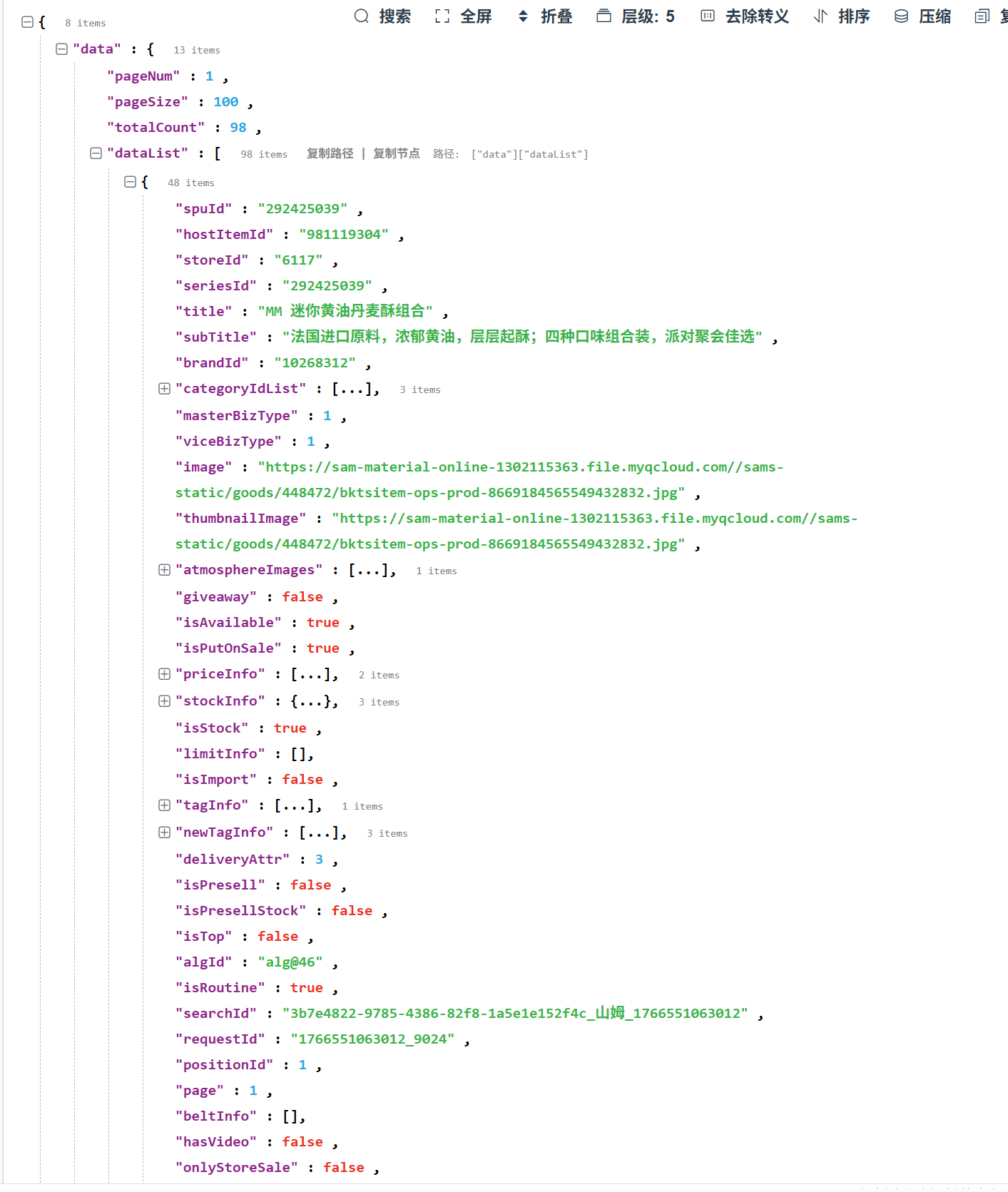 1、山姆小程序有一个搜索接口,可以搜索关键词,返回数据