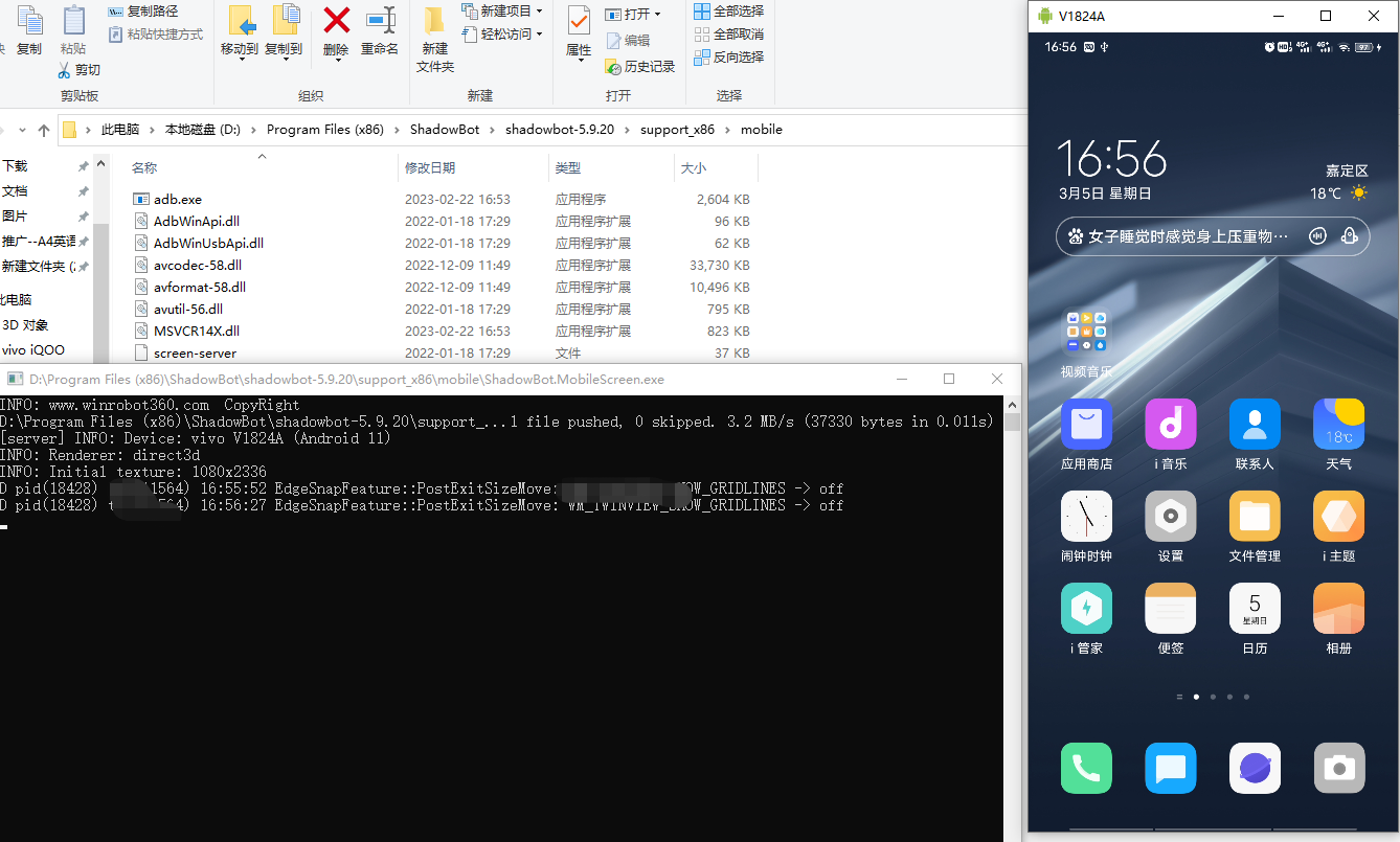是哪里还需要配置吗 开发者模式-->USB调试都已打开 android手机自动化插件也已经安装 运行的D:\Program Files (x86)\ShadowBot\shadowbot-5.9.20\support_x86\mobile\ShadowBot.MobileScreen.exe可以控制手机 正常操作手机 点击滑动输入等操作