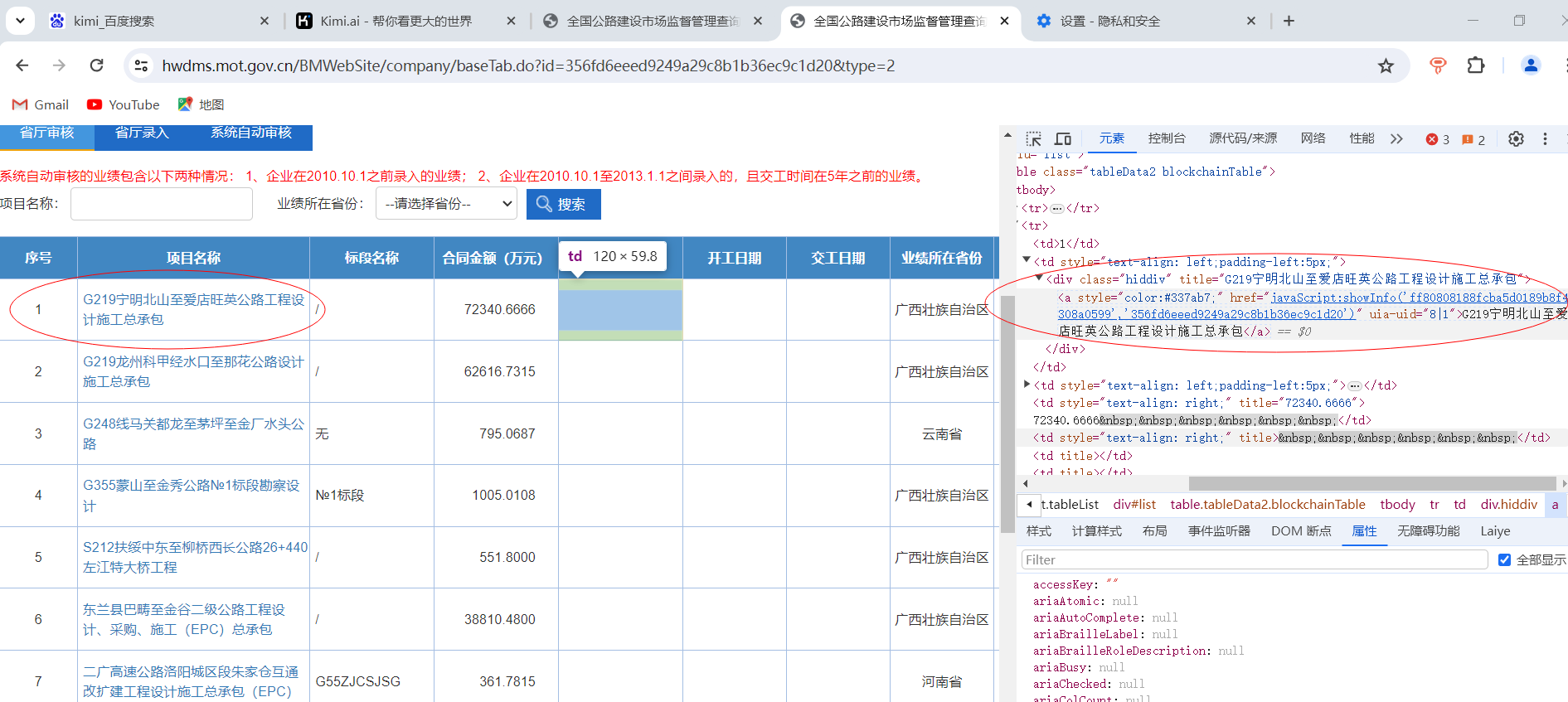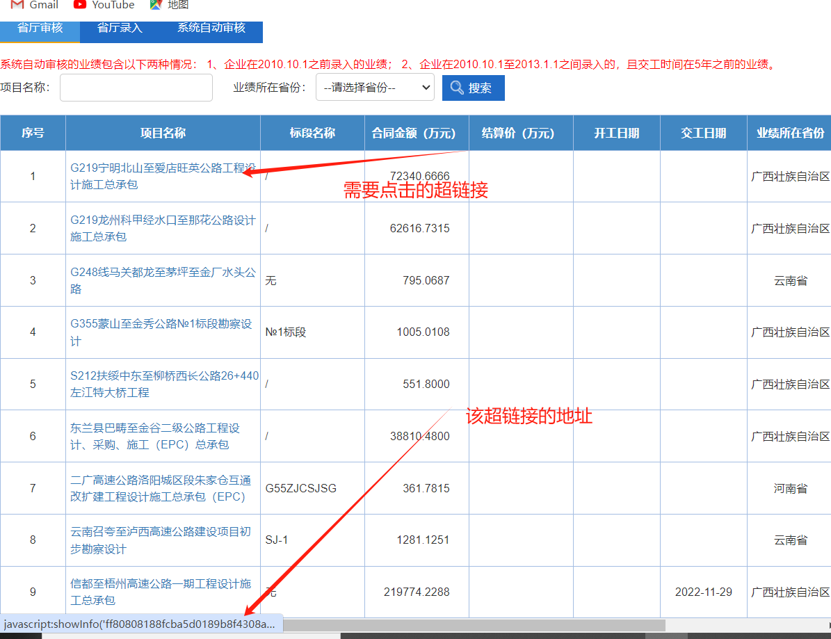 <a style="color:#337ab7;" href="javaScript:showInfo('ff80808188fcba5d0189b8f4308a0599','356fd6eeed9249a29c8b1b36ec9c1d20')" uia-uid="8|1">G219宁明北山至爱店旺英公路工程设计施工总承包</a>