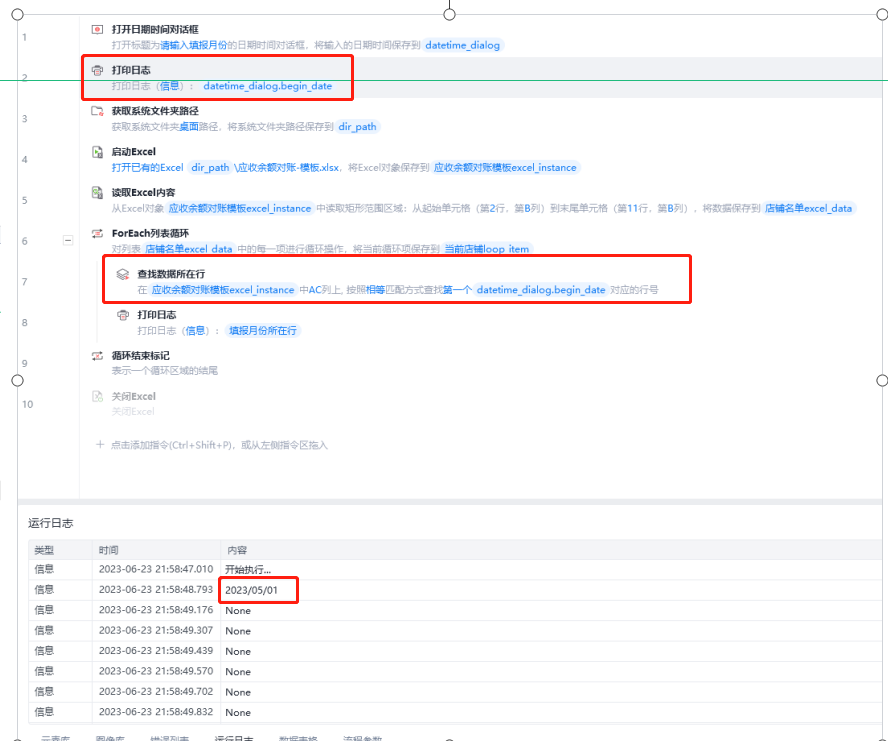 要查找的时间2023/05/01,明明有好多行,为啥打印出来都是NONE? 哪里出问题了?应该咋写?