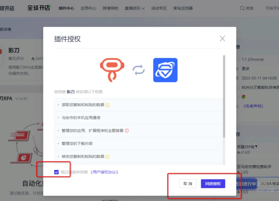 一、首先需紫鸟客户端的影刀插件安装