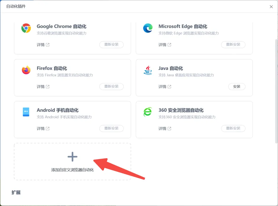2. 点击添加自定义浏览器自动化