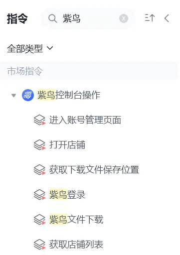 2. 在影刀中找到【紫鸟控制台】相关指令