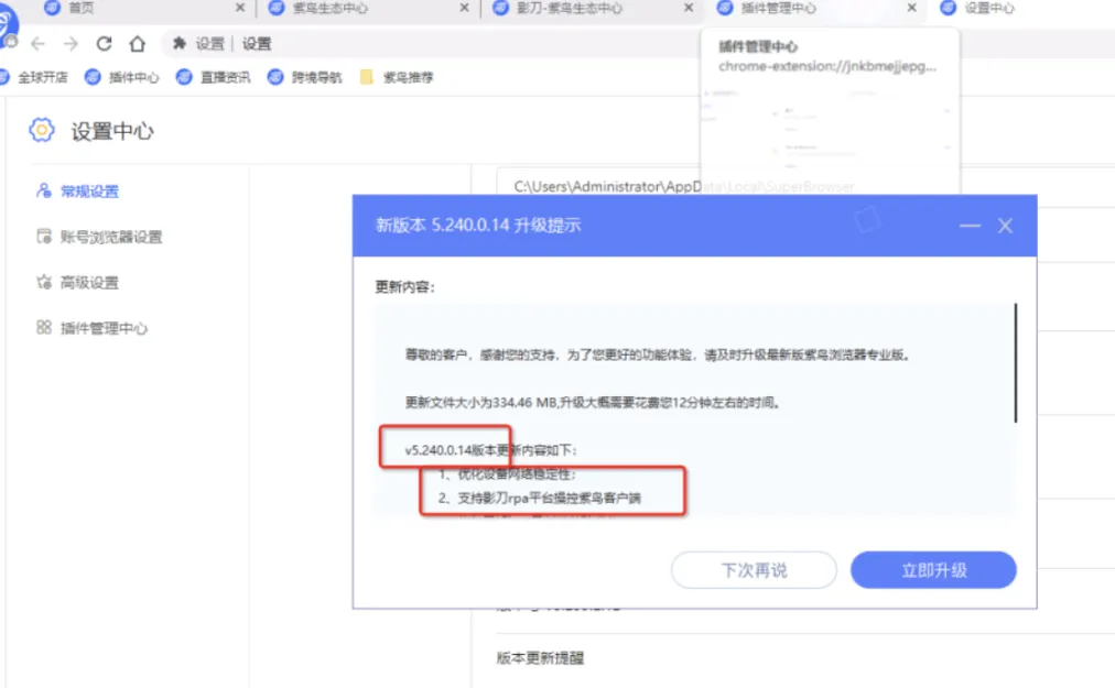 必要条件:请将紫鸟浏览器升级至5.240.0.14及以上