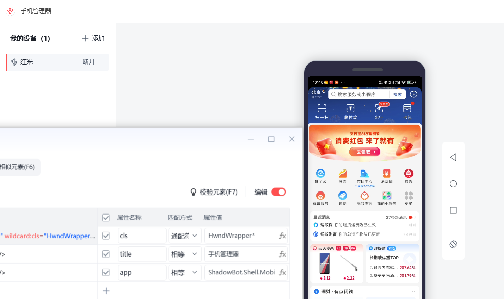 如图,在手机管理器中尝试Ctrl+Click来捕获元素,但是捕获出来的是手机管理器的元素,而非手机的元素,这是为啥?