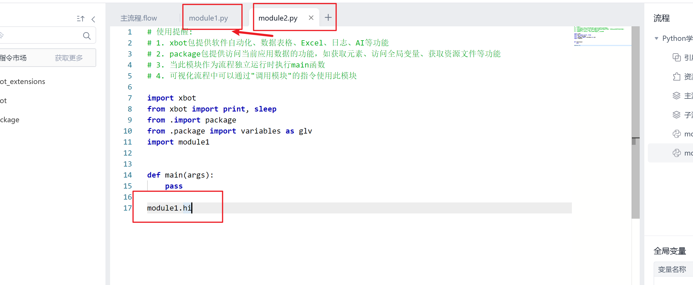 module1.py是新增的模块,在module2中导入这个模块。但是在调用module的函数时报错。