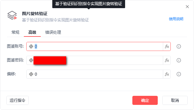 请问图片旋转验证码识别,指令的帐号密码,前面的python图标要点亮吗?应该不需要吧,但不知道啥情况,不管是点亮,或不点亮,都无法使用,而且在不点亮的情况下,帐号会自动变为0,密码不会,麻烦排查一下好吗?谢谢!