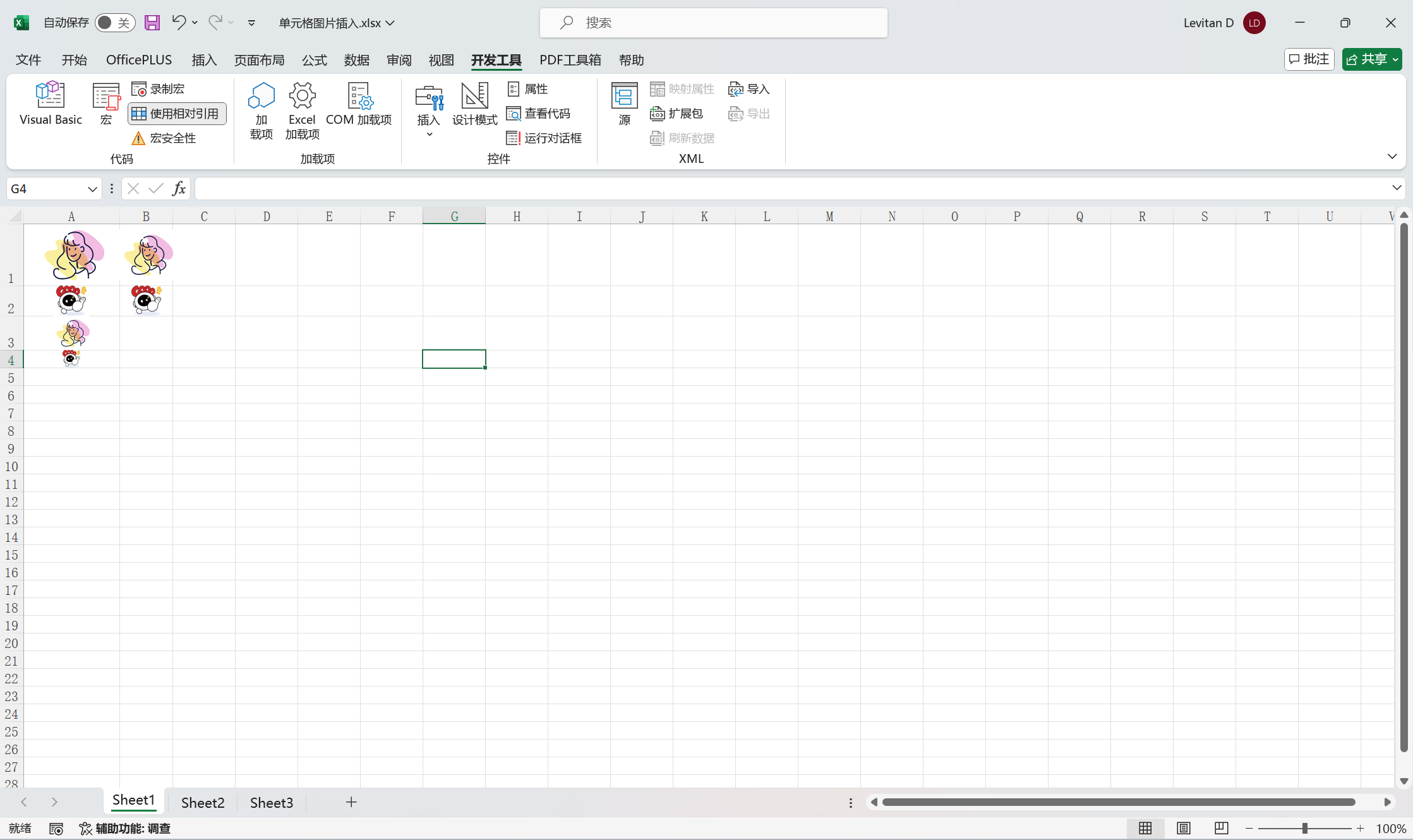 我的想法是使用VBA指令实现插入图片效果。在插入图片前获取单元格的宽高,并根据单元格的大小等比例缩放图片,在将图片居中放置在单元格上,实现图片伪嵌入单元格。