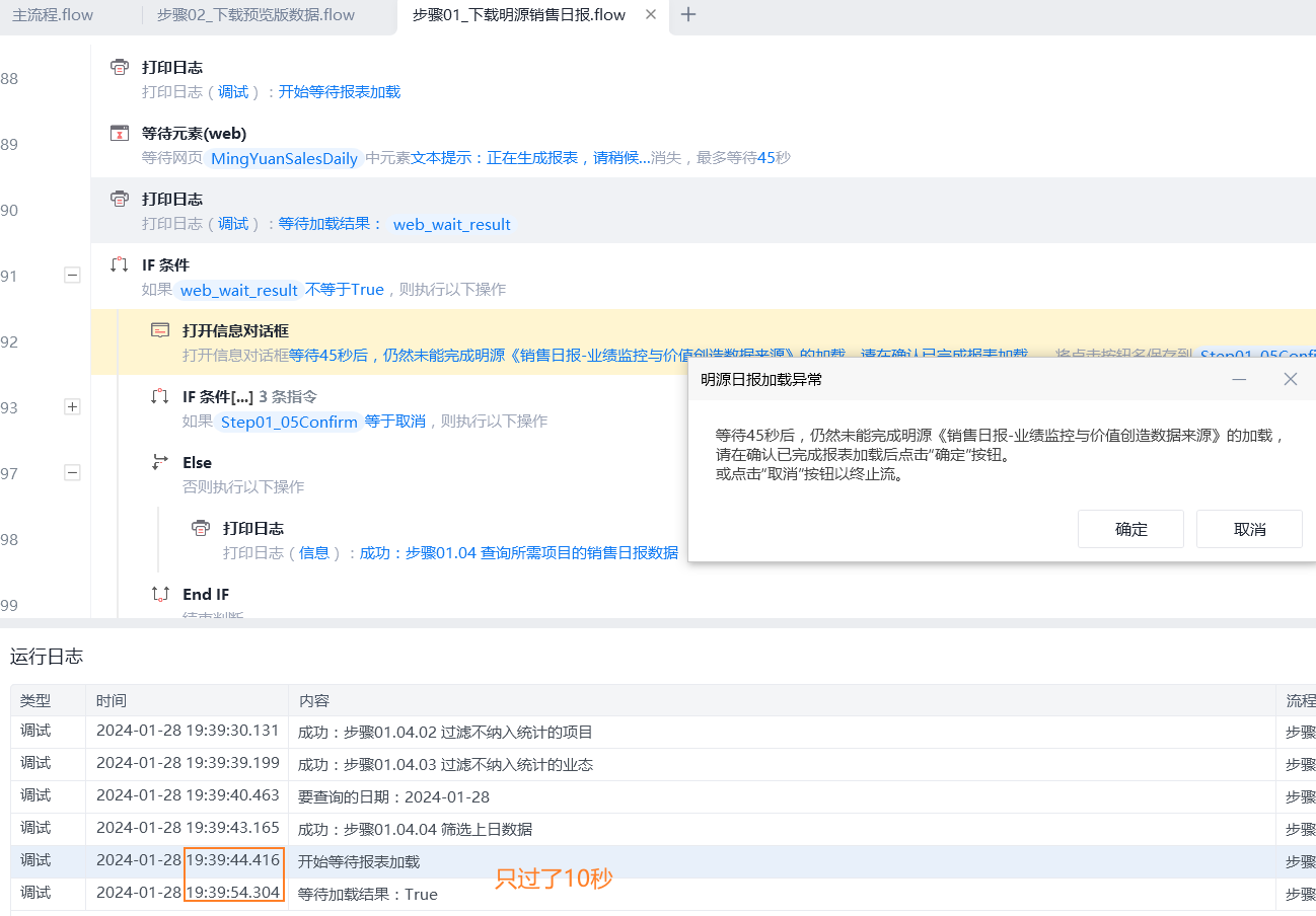 如图,等待结果为True,但是仍然执行了“不等于True”时要执行的内容。