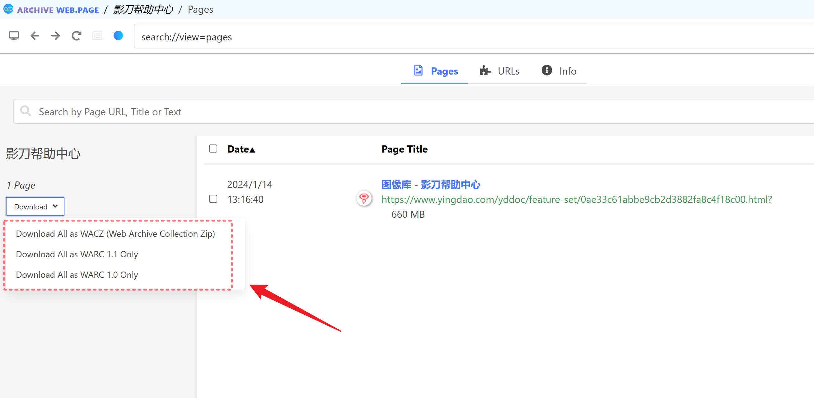 所有归档数据都是按页面组织的。您可以进一步将已归档的页面组织到单独的归档集合中,查看每个页面以确保正确归档,并删除您不再想要或不需要的单个页面截图。