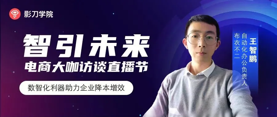 11月2日,由影刀RPA联合网川教育主办的「2021智引未来·双11电商大咖访谈直播节」有幸邀请到服装品牌小布电商自动化办公负责人王智鹏老师,与观众一起聊一聊数智化利器如何助力企业降本增效。