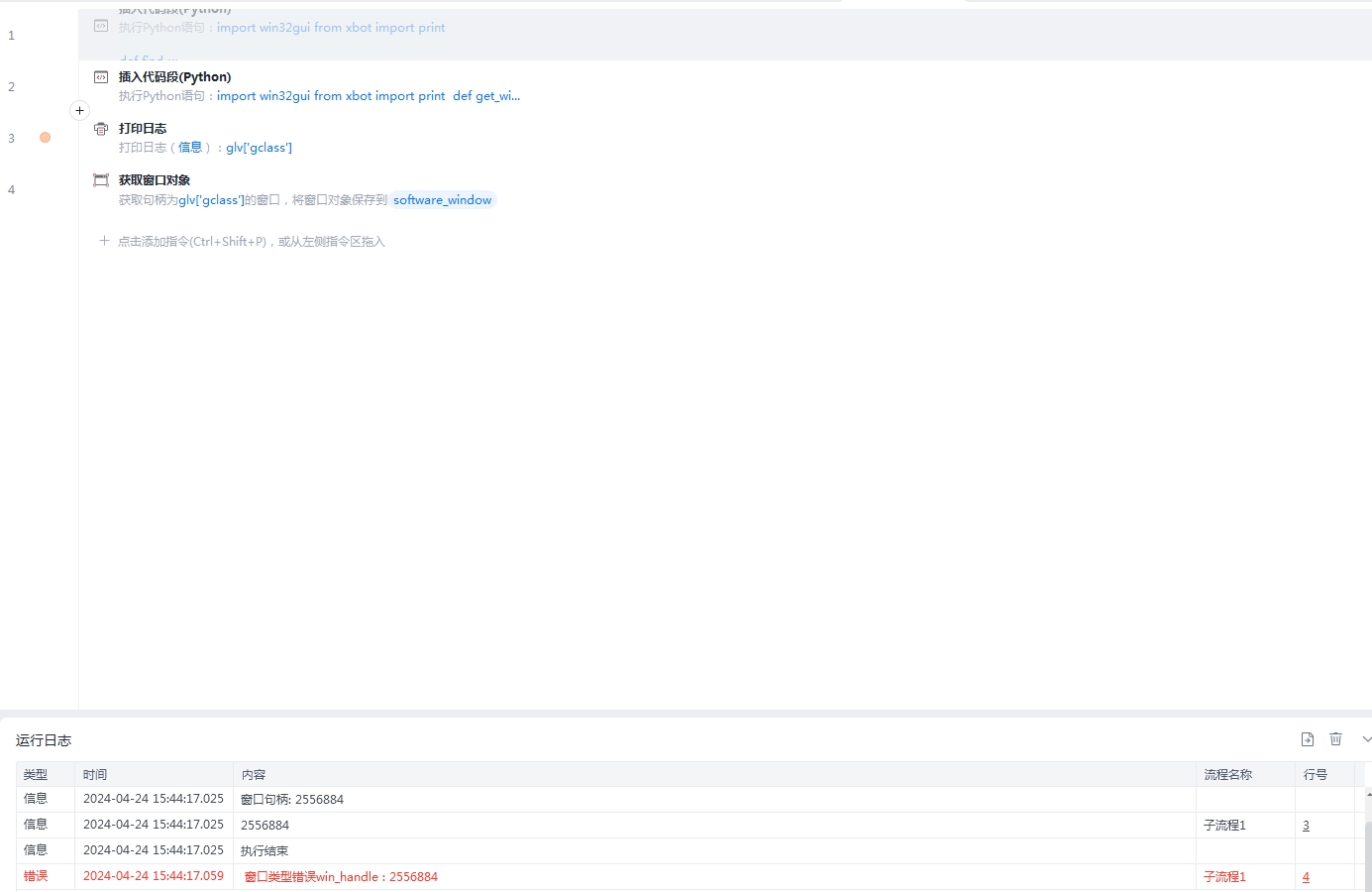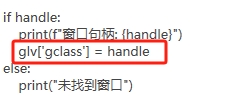 通过python代码块获取到窗口句柄,通过全局变量赋值