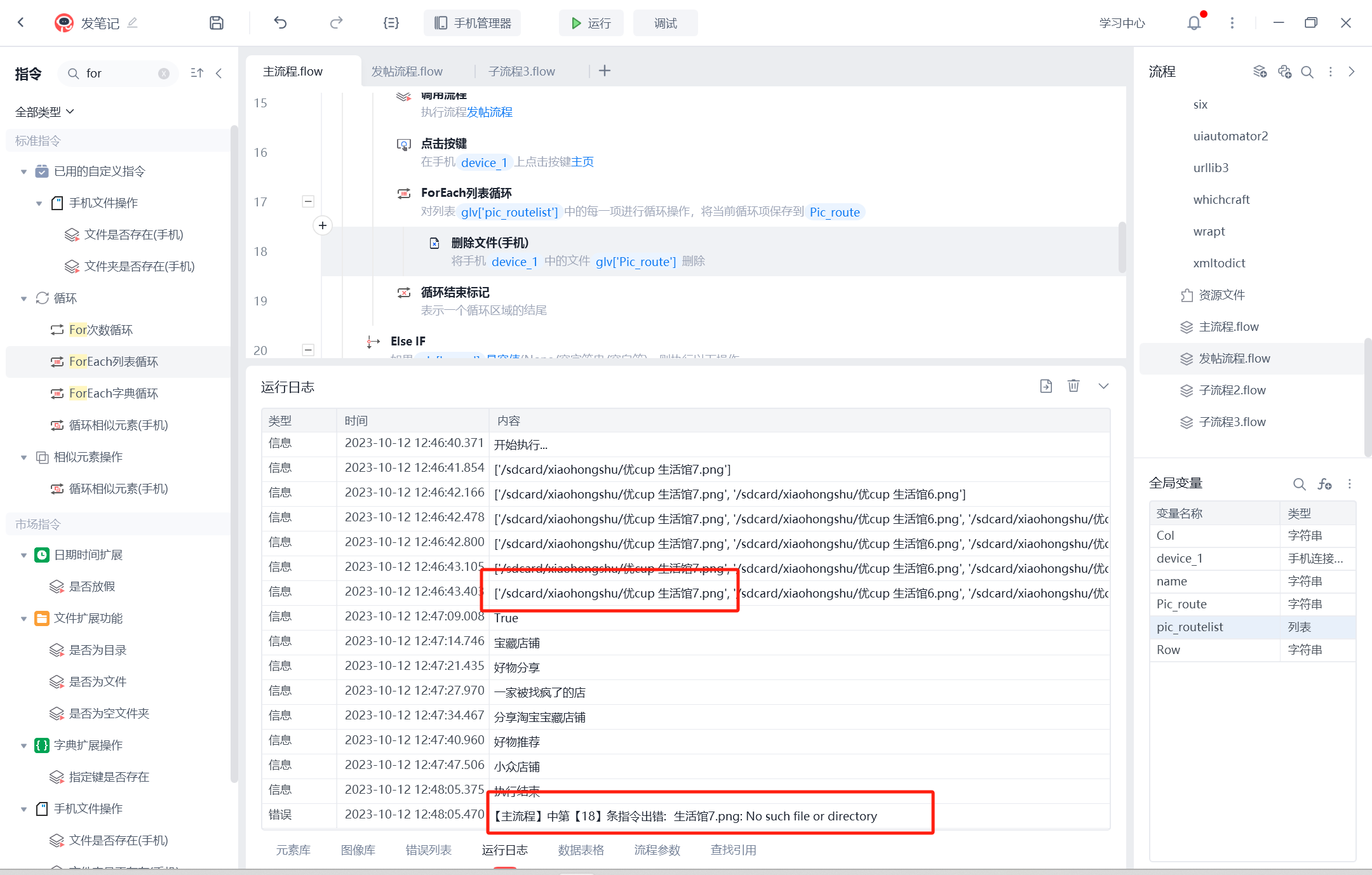 手机-删除文件指令,调用变量时会自动删除空格前的路径