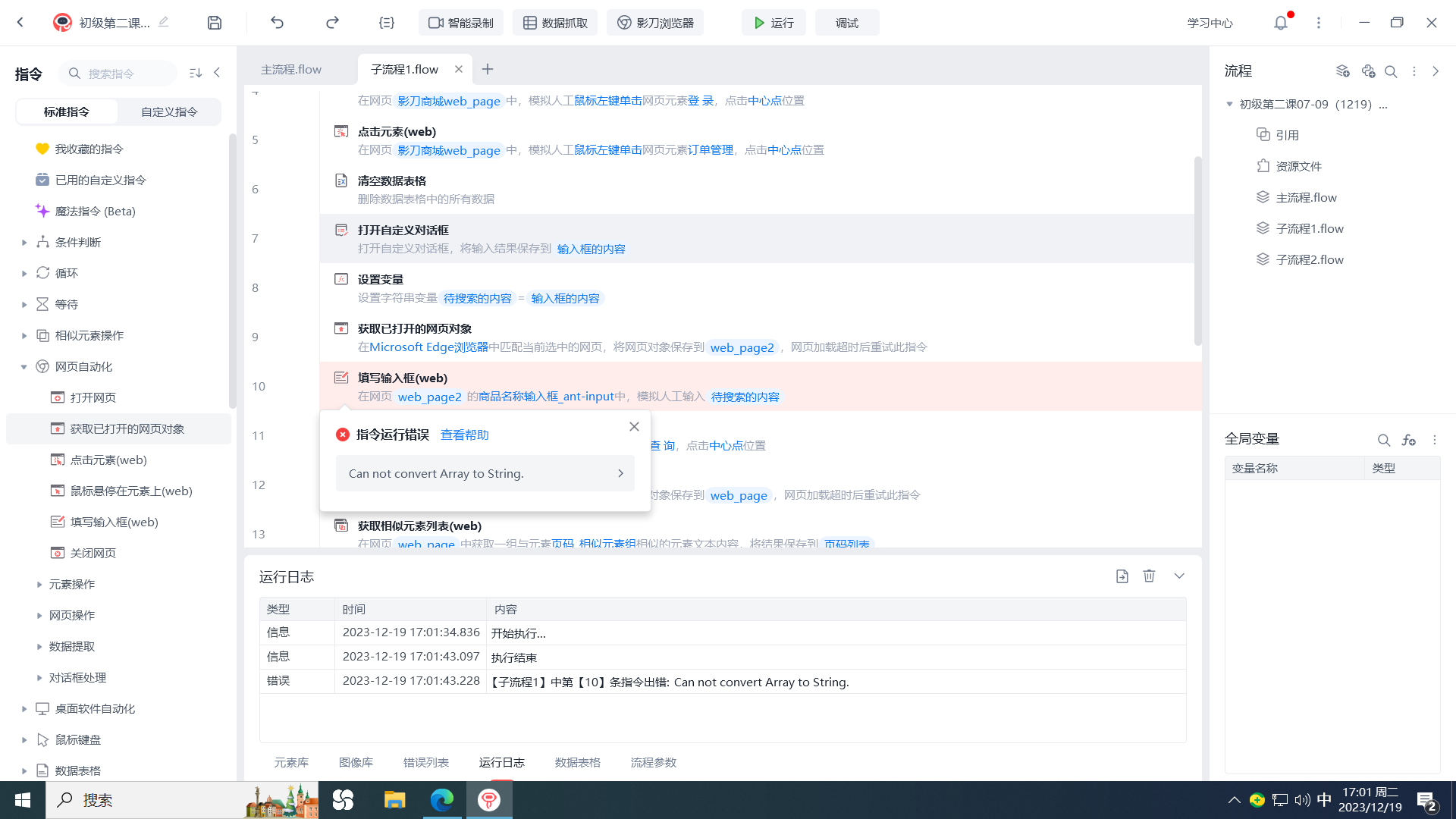 初级课程第二课09我的第一个机器人,输入自定义对话框后,无法将自定义内容自动填写进影刀商城的搜索框。