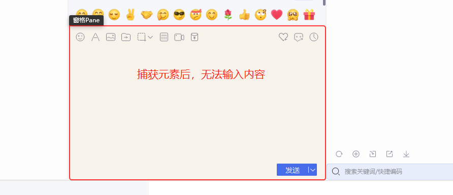 京麦10.0版本的咚咚回复窗口,填写输入框(win)捕获元素后,无法输入内容